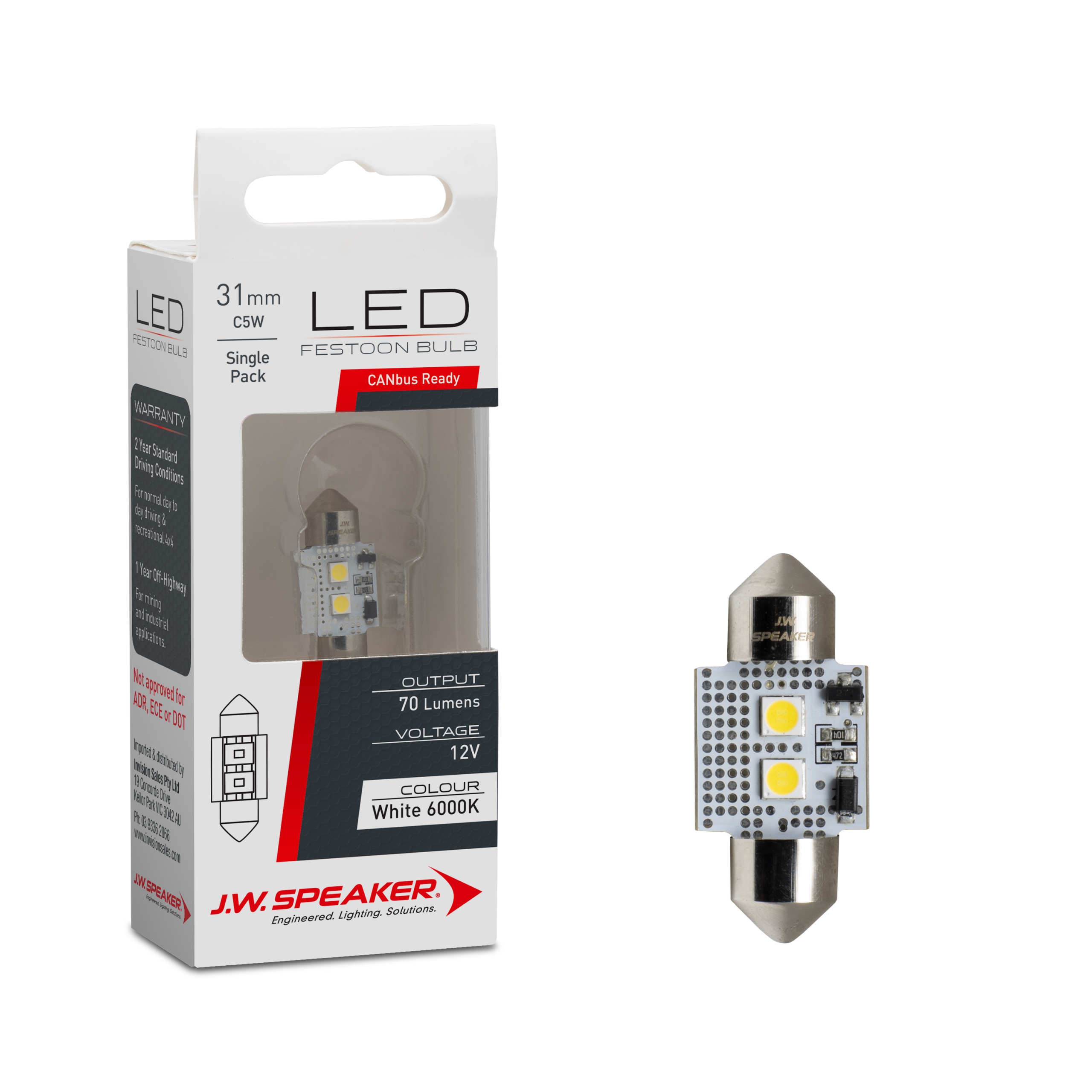 | 990100CB | LED Festoon Bulb - 12V C5W 6000K - SV8.5 / 31 x 10.5 Base (CANbus) | Spec Sheet File_Download | 1 |