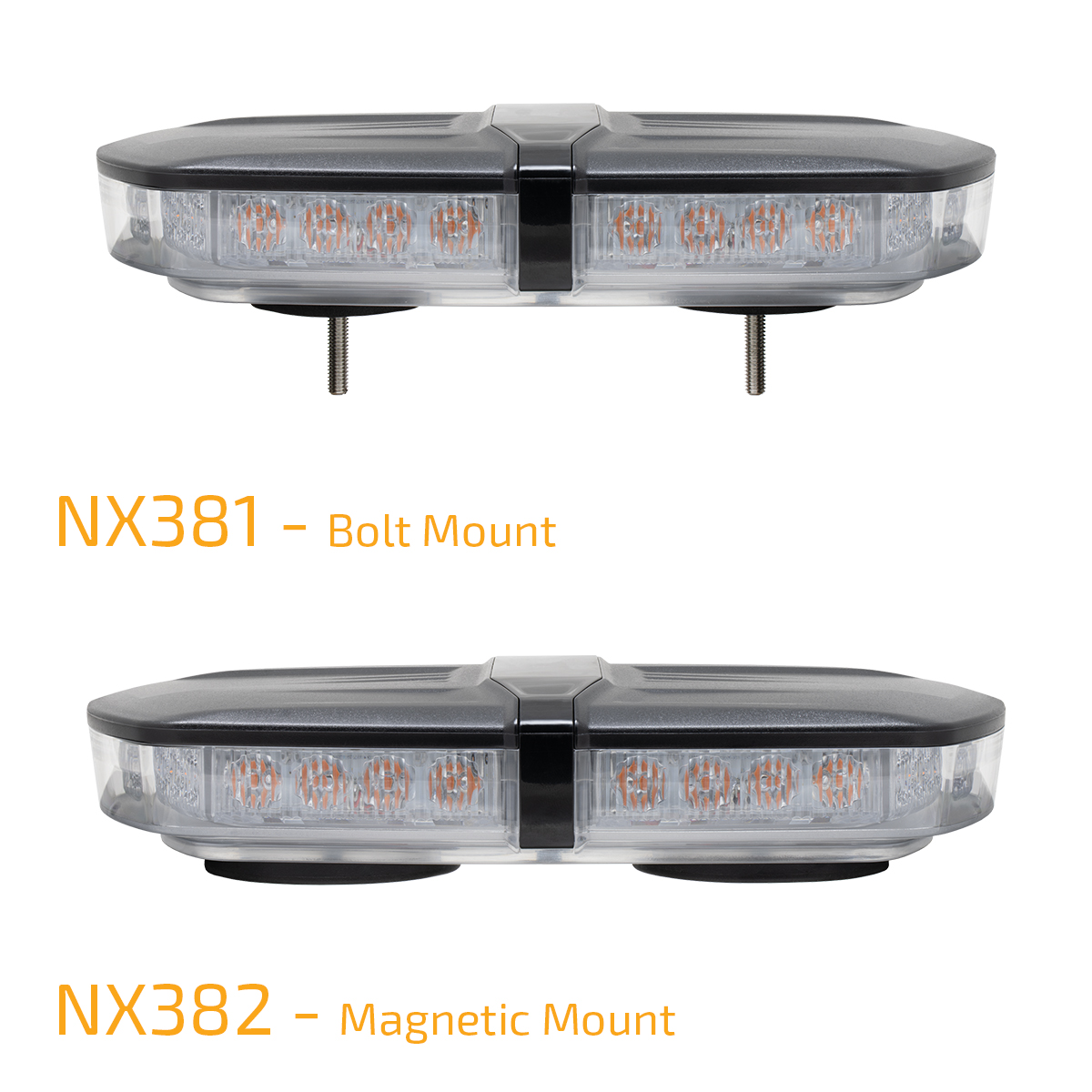 Each size comes in either hard-wired bolt mount or magnetic mount with 12V vehicle plug, expect for the NX389 which comes with both mounting options.